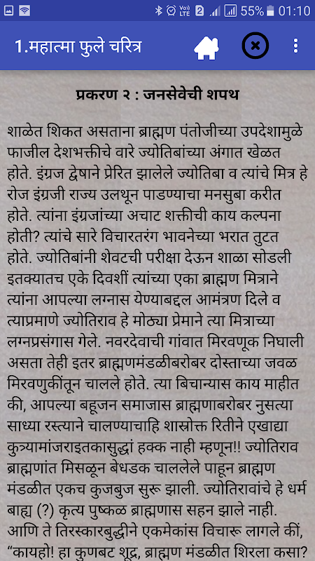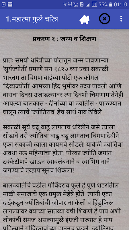 महात्मा फुले यांचे प्रथम चरित्र या अॅप मध्ये समाविष्ट करण्यात आले आहे.