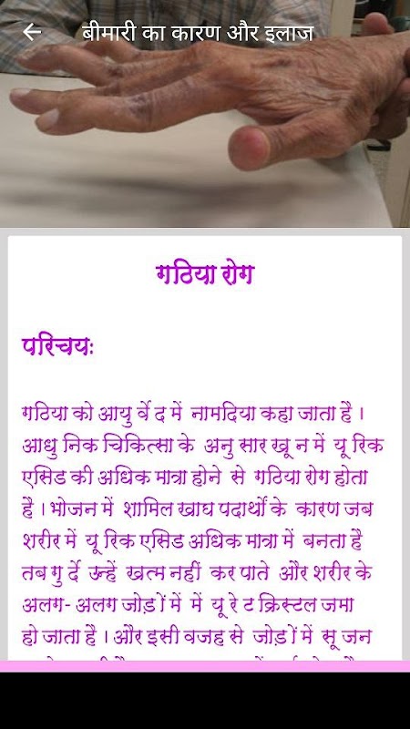 यह एप्प बीमारी का कारण और इलाज के बारे में जानकारी प्रदान करता है