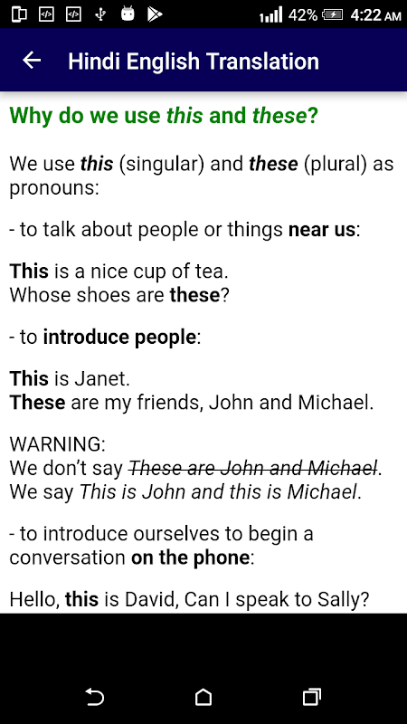 हिंदी वाक्यो की इंग्लिश बनाये और आराम से इंग्लिश सेंटेंस का हिंदी अनुवाद जाने !!