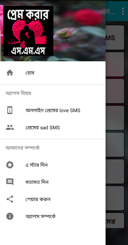 এই অ্যাপসটি যে সব এসএমএস গুলো আছে আপনি যে কোন মেয়ে কে পাঠালে মেয়েরা আপনার প্রতি ভালোবাসার জন্য দুর্বল হয়ে যাবে । এবং অপনার ভালোবাসা হয়ে যাবে ।