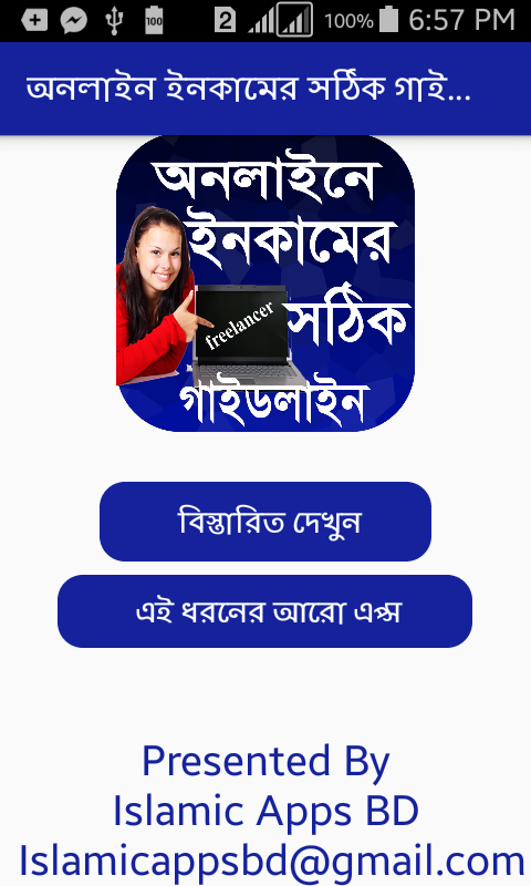 এই এপ্সটির মাধ্যমে অনলাইন ইনকামের সঠিক গাইড লাইন পাবেন। যারা নতুন ফ্রিল্যান্সার, তাদের অনলাইন মার্কেট প্লেস সম্পর্কে ধারণা খুবই কম । আমাদের এই এপ্সটির অনলাইন ইনকামের সঠিক গাইড লাইন পাবেন। আশা করি আপনাদের এই এপ্সটির মাধ্যমে অনলাইন সম্পর্কে একটি ভাল ধারন হবে ।