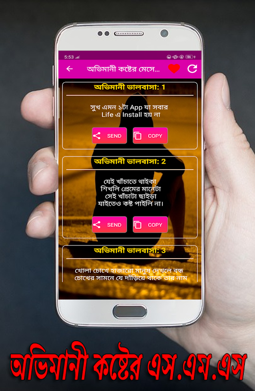 অভিমান এমন একটা জিনিস যা একমাত্র ভালোবাসার মানুষ এর সাথেই করা যায়।অভিমানী কষ্ট মানুষকে অনেক বেশি যন্ত্রনা দিয়ে থাকে।ভালবাসার মানুষটি তাকে সারাটি জীবন দুঃখ আর কষ্ট দিয়ে থাকে।আর সেই কষ্টকে গিরে অভিমানী এসএমএস নিয়ে আমাদের এই অ্যাপটি। এই অ্যাপটিতে রয়েছে সকল অভিমানী ভালোবাসার কষ্টের এস.এম.এস।