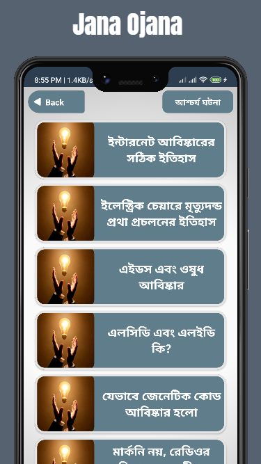 এই অ্যাপটি আবিষ্কারের পিছনে ঘটে যাওয়া রহস্য রোমাঞ্চ গল্প এবং মহাবিশ্বের অজানা রহস্য গুলো দিয়ে সাজানো। বিজ্ঞান ও প্রযুক্তি নিয়ে এই অ্যাপটিতে আছে বিজ্ঞানের জাদু। আবিষ্কারের পেছনের মজার গল্প গুলোকে উম্মোচন করে দিয়েছি আমাদের এই অ্যাপে। তবে যাই হোক জানা অজানা বই পড়ে বিজ্ঞানের রাজ্যে ঢোকে বিশ্বের জানা অজানা তথ্য গুলোকে সামনে আনা আর পিছনে যত কাহিনী কাহিনী লুকায়িত ছিলো তা তুলে নিয়ে আসা মজার।