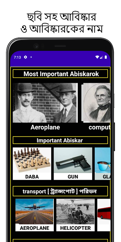আবিষ্কার ও আবিষ্কারকের সম্পর্কে সকল তথ্য ছবি সহ এই অ্যাপটি মধ্যে দেওয়া হয়েছে।