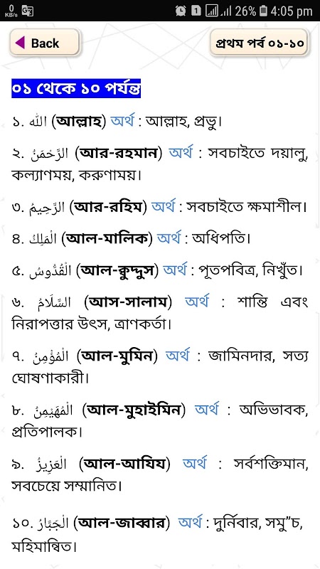 এই আল্লাহর ৯৯ টি নাম, অর্থ ও ফজিলত 99 Name Of Allah অ্যাপটিতে আপনাদের জন্য যা যা থাকছে --