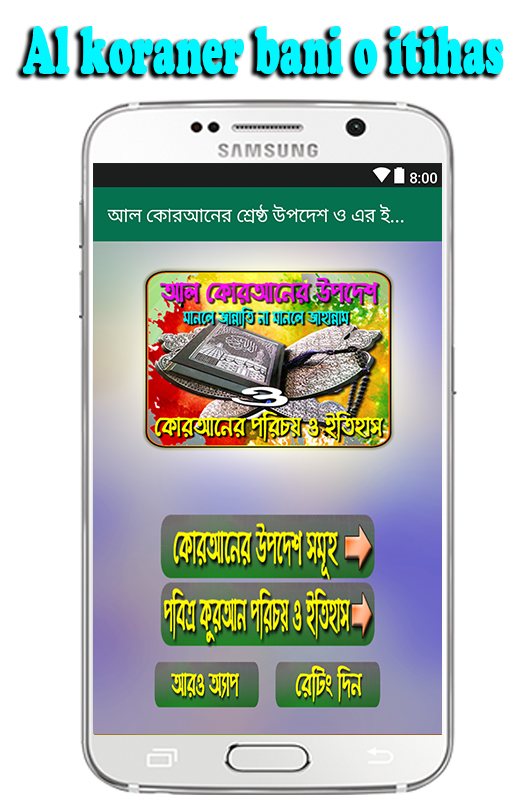 এই অ্যাপে আল কোরআনের শ্রেষ্ঠ উপদেশ বা বাণী ও কোরআনের পরিচয় ও ইতিহাস জানতে পারবেন