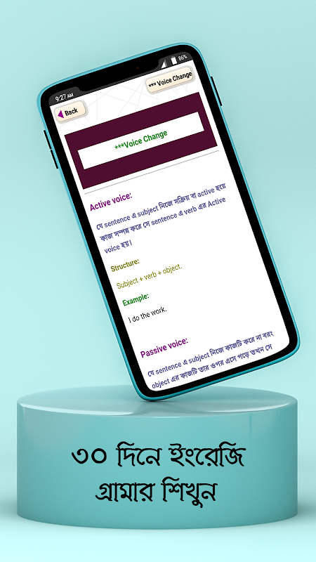 Ta aplikacja pomoże Ci nauczyć się gramatyki angielskiej, np. Alfabet, Zdanie, Przedimki এর Przedimki এর ব্যবহার, Czas, Przyimek, Odpowiedni przyimek, Wypełnianie zdania - এর, Właściwa forma czasowników, Transformacja zdania, Zmiana głosu, Narracja, Stopień i zmiana stopni - এর নিয়মাবলী, Odniesienie do zaimka, Interpunkcja , Łączniki zdań, Zastosowania niektórych specjalnych słów lub fraz, Modyfikatory lekcji języka angielskiego, Synonimy-antonimy i pytania tagów, Pytania (কিভাবে প্রশ্ন করতে হয়), Przysłowie, Idiomy ও Zwroty, ইংরেজিতে কথা বলার ফর্মুলা, স্পোকেন ইংলিশ, Angielski Listy słów ze słownictwa, konwersacja również.