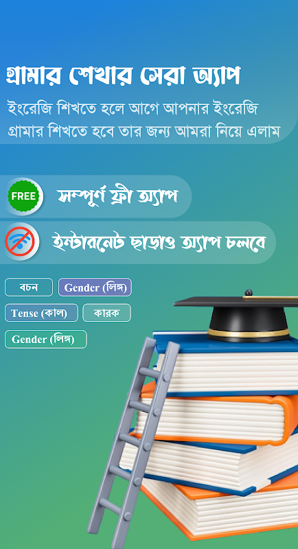 Naucz się gramatyki angielskiej w języku Bangla. Ta aplikacja do nauki gramatyki to wszechstronna aplikacja mobilna, która została zaprojektowana, aby pomóc użytkownikom bengalskim poprawić ich umiejętności gramatyczne w języku angielskim. Aplikacja do gramatyki została zaprojektowana tak, aby była łatwa w użyciu i dostępna dla osób mówiących na wszystkich poziomach, co czyni ją idealnym narzędziem do doskonalenia gramatyki języka angielskiego.