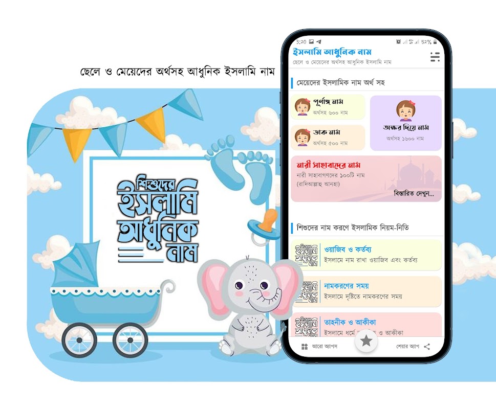 Ta aplikacja zawiera imiona islamskie i ich znaczenie w języku Bangla. Piękna aplikacja z imionami islamskimi, zawierająca znaczenia dla muzułmańskich chłopców i dziewcząt, która pomoże Ci wybrać imię dla Twojego dziecka.