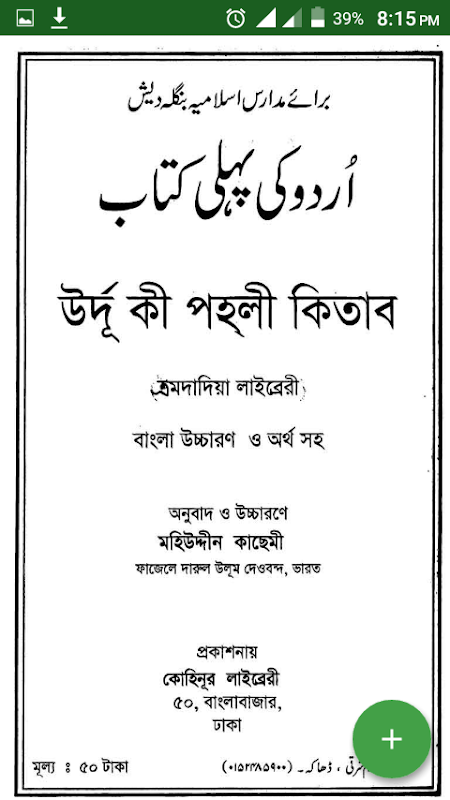 Urdu Pehli Kit¯ab z Bangla wymowy / Transliteracja i translację.