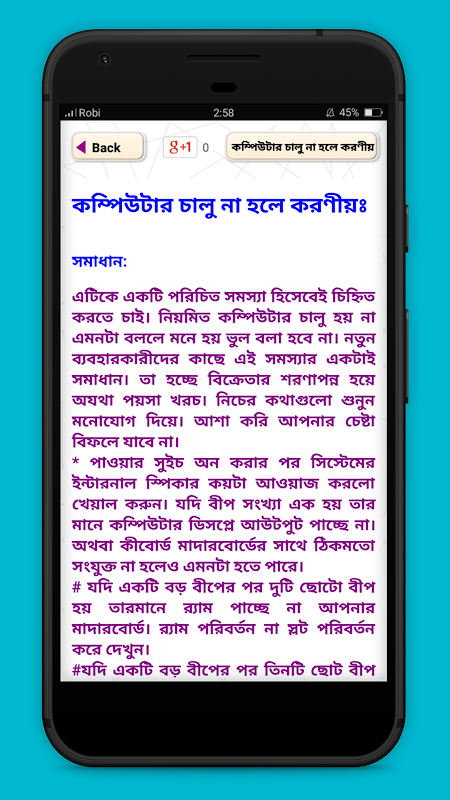 তথ্য ও প্রযুক্তির যুগে কম্পিউটার একটি অত্যন্ত জরুরী একটি বিষয়। শিক্ষা কিংবা কর্মস্থলে কম্পিউটার এর বিশেষ জ্ঞান কে প্রাধান্য দেওয়া হয় অনেক বেশি। কম্পিউটার বা ল্যাপটপ ছাড়া জীবন এখন অচল প্রায়। নতুন নতুন প্রযুক্তির মাধ্যমে আরও বেশি বেশি করে আধুনিকায়ন করা হচ্ছে এ প্রযুক্তিকে। তাই কম্পিউটার এর সঠিক ব্যবহার জানা খুবই জরুরী। এছাড়া জানা জরুরি কম্পিউটার এর নানা সমস্যা। কেননা এর যেমন অনেক বেশি সমস্যা ও অনেক বেশি।তাই আমরা আজকের এই অ্যাপটি সাজিয়েছি বেসিক এবং কমন কিছু কম্পিউটার বিষয়ক সমস্যা ও এর সমাধান নিয়ে। আমাদের যে বিষয়গুলো জানা খুব দরকার তা হচ্ছে কম্পিউটার শিক্ষা ,কম্পিউটার সমস্যা ও সমাধান ,কম্পিউটার পরিচিতি ,কম্পিউটার টিপস ও ট্রিকস ,গ্রাফিক্স ডিজাইন শিখুন ,কম্পিউটার প্রোগ্রামিং (সি) ,30 দিনে কম্পিউটার টাইপ শিখুন ইত্যাদি। তাই ল্যাপটপের যত্ন , কম্পিউটার তথ্য,ডিলিট হওয়া ফাইল রিকভারি করার উপায় ,কম্পিউটার বিষয়ক প্রশ্ন উত্তর ,নষ্ট কম্পিউটার ঠিক করার উপায় ,উইন্ডোজ সেটআপ দেয়ার নিয়ম ইত্যাদি জানতে অ্যাপ টি সংগ্রহে রাখুন।আশা করব অ্যাপটি দ্বারা সবাই খুব উপকৃত হবেন এবং আমাদের দেয়া তথ্য গুলো খুব কাজে দিবে।