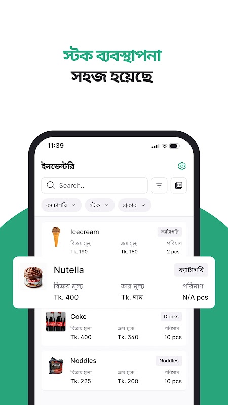 📦 ট্র্যাক ইনভেন্টরি: রিয়েল-টাইমে ইনভেন্টরি পরিচালনা করুন, আইটেমগুলিকে বিভাগগুলিতে গোষ্ঠী করুন, কম-স্টক সতর্কতাগুলি পান এবং পণ্যের কার্যকারিতা বিশ্লেষণ করুন।