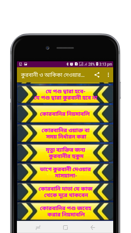 কুরবানী এর মাসায়েল জানা সবার জন্য অত্যন্ত জরুরি. কুরবানী এর নিয়ম ও ইতিহাস জানলেই কুরবানীর গুরুত্ব সবাই উপলব্ধি করতে পারবে ।কুরবানী ঈদ বা ঈদুল আযহা মুসলমানদের জন্য দ্বিতীয় আনন্দময় ধর্মীয় উৎসব।কুরবানি (Qurbani) কুরবানীর মাসায়েল একটি বাংলা ইসলামিক অ্যাপ।কুরবানী Qurbani অর্থ ত্যাগ। ঈদুল আযহা (eidola Asha) মূলত ত্যাগের উৎসব। কুরবানির সময় মুসলমানেরা তাদের সাধ্যমত আল্লাহর সন্তুষ্টি অর্জনের জন্য উট, গরু, দুম্বা কিংবা ছাগল কোরবানি বা জবাই করে। মহান আল্লাহ পাক পবিত্র কোরআন শরীফে কুরবানীর ইতিহাস সম্পর্কে সুন্দর বর্ননা দিয়েছেন যা থেকে আমরা কুরবানির গুরুত্ব ও তাৎপর্য বুঝতে পারি।কুরবানি বা কোরবানি দেওয়ার সুন্নাহ রয়েছে। যে কোনো ভাবে , একটা পশু জবাই করলেই কুরবানি বা কুরবানী হয় না। যেমন একটি মাসালা বা মাসায়েল হচ্ছে, ঈদুল আযহার নামাজের আগে কুরবানি করা সঠিক নয়- এরকম কেউ করলে কুরবানী বা কোরবানি হবে না।