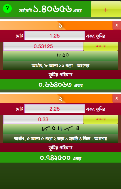 খতিয়ানের আনা, কড়া, গণ্ডা, ক্রান্তি, তিল প্রভৃতির সহজ হিসাবের Application.