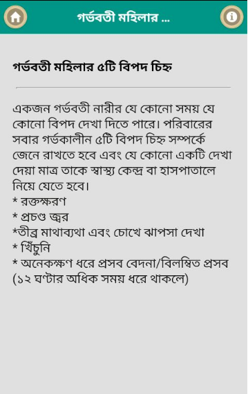 In this apps we try to inform you that how to take care of a pregnant mother. It's very important to take extra care of a pregnant mother. We believe that this apps will help you who find this types of information. We also try to cover: