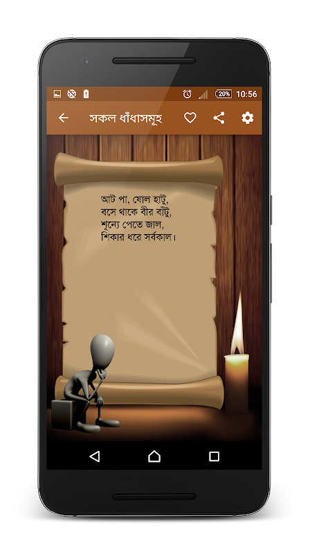 Ta aplikacja zawiera ponad 220 bangla dhadha (bengalski dhadha) (zagadka) w bardzo przyjaznym dla użytkownika interfejsie. Zebraliśmy je (bangla dhadha) z kilku źródeł i podano tylko wybrane dhadha, które mogą zainteresować cię czytaniem więcej dhadha.