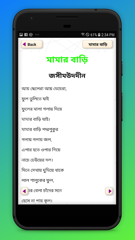 ছোট্ট কবিতা, মজার মজার ছন্দ, বিখ্যাত কবিদের ছড়া নিয়ে শিশুদের হাতে খরি অ্যাপ যা বাচ্চাদের বই, বিশেষ করে ক্লাস ওয়ানের বাংলা বই, ক্লাস ওয়ানের ইংলিশ বই, শিশু পাঠ, বাংলা বই আদর্শলিপি, রূপকথা, ছবি সহ ছন্দ ইত্যাদি নিয়ে সুন্দর অ আ ক খ apps যা বাচ্চাদের সহজে মজার মজার ছন্দ এর সাহায্যে শিখতে ও পড়তে সাহায্য করে।