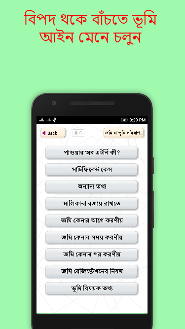Dzisiaj przyniosłem wam system pomiaru ziemi lub ziemi Bangladeszu. Które możesz dowiedzieć się z tej aplikacji. Próbowałem tutaj zapisać prawie wszystkie rzeczy, które musisz wiedzieć, aby zmierzyć ziemię. Kupując i sprzedając ziemię, musimy liczyć się z wieloma stratami ekonomicznymi z powodu niezrozumienia kalkulacji i wielkości gruntu. Nie znamy się na pomiarach lub pomiarach gruntów. Nie rozumiemy, kiedy ziemia jest mierzona lub mierzona w naszym domu lub wiejskim domu. I nie rozumiem, nie ma innego wyjścia, jak patrzeć. Więc dzisiaj omówię różne metody pomiaru terenu, aby dać ci jasny obraz. Dzięki któremu można łatwo poznać pomiary gruntów zgodnie z prawami gruntów Bangladeszu, a także nauczyć się różnych rodzajów prac matematycznych za pośrednictwem aplikacji.