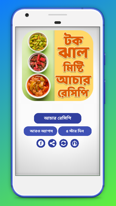 এই অ্যাপটিতে আরও আছে- আমের খোসা সহ টক আচার চালতার টকঝাল আচার পিঁয়াজের আচার টমেটোর আচার বোম্বে মরিচের আচার কদবেলের আচার আলু বোখাবার আচার আস্ত জলপাইয়ের আচার।শুকনা বড়ইয়ের ঝাল আচার আম রসুনের ঝাল আচার টক তেঁতুলের আচার