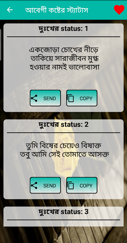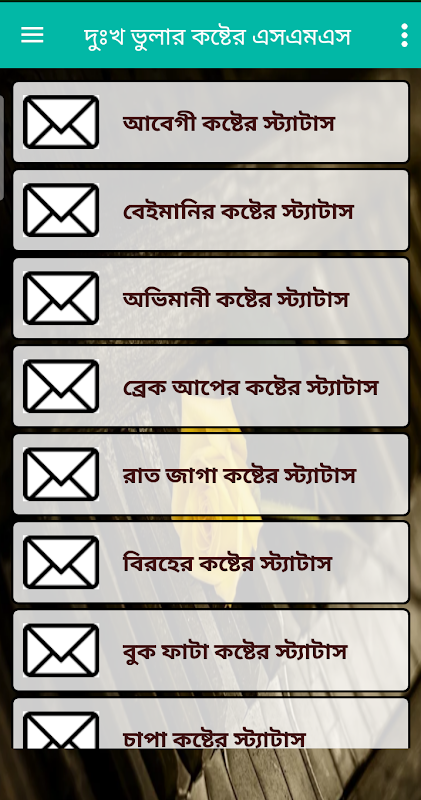 যারা প্রেমে ছেকা খেয়ে বাকা হয়ে গেছেন তাদের জন্য দুঃখ ভুলার কষ্টের এসএমএস অ্যাপসটি ।