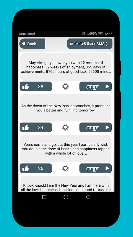 বাংলা এসএমএস ২০২০ অ্যাপটি নানা রকম এস এম এস এর সমন্বয়ে গঠিত হয়েছে। এই অ্যাপে প্রচুর এস এম এস রয়েছে যা আপনার প্রয়োজন পুরো করবে বলে আশা করছি।