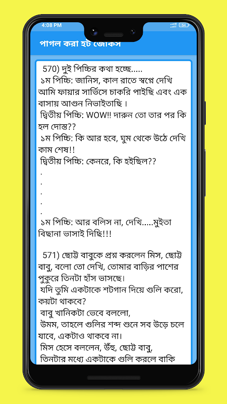 আমাদের কর্ম মুখর জীবনে সবাই অনেক সময় বোরিং বা বিরক্ত হয়ে যাই। তখন আমারা বিভিন্ন ভাবে আমাদের মনকে আনন্দ দেয়ার চেষ্টা করে থাকি তার মধ্যে পড়া পড়া একটি অন্যতম মাধ্যম আমাদের মনকে আনন্দঘন করতে তাই আমারা আপনাদের জন্য নিয়ে এসেছি এই দারুন এপসটি। আমাদের এই পাগল করা হট জোকস এপটি আপনাদের অবসর সময় এবং বোরিং সময়কে আরো আনন্দ দায়ক করার জন্য সুন্দর ভাবে সাজানো হয়েছে। তাই আপনি আমাদের পাগল করা হট জোক্স এপটি পড়ুন আর মন খুলে হাসুন।