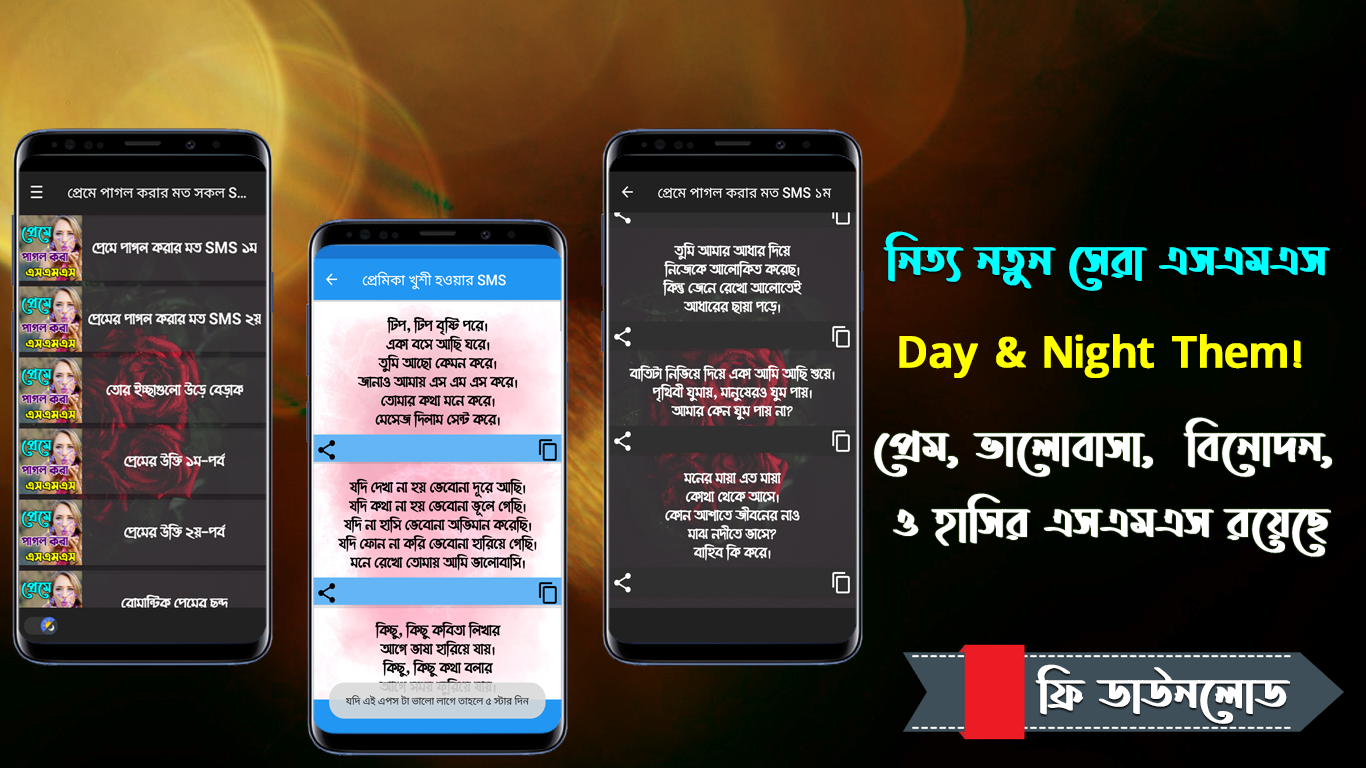 একটি মনের মানুষ পাওয়া টা খুব কষ্টের ব্যাপার আর যদি তা পাওয়ার পাওয়ার যায় তা তো অনেক কষ্টকর হওয়ার কথা, তাই এবার মনের মানুষ কে বেশি বেশি নিজের প্রেমে পাগল পাগল করে নিন এই অ্যাপস থেকে, সকল ধরনের এসএমএস পাবেন, আমাদের এই অ্যাপস থেকে। লজ্জা মেয়েদের ভূষণ হলেও দুনিয়াতে লাজুক বা মুখচোরা ছেলে কিন্তু একেবারেই কম নেই। বরং খুব কম বয়সে মেয়েদের সাথে কথা বলতে বা তাদের সাথে চলতে গেলে বেশিরভাগ ছেলেই খুব নার্ভাস অনুভব করেন। চোখে চোখ রেখে কথা বলতে না পারা, এলোমেলো কথা বলে ফেলা, হাত পা কাঁপা, ঘন ঘন ঘামতে থাকা ইত্যাদি অনেক অনেক উপসর্গই দেখা দেয় অনেকের মাঝে। ফলে একজন প্রেমিকা খুঁজে পাওয়া যেন রীতিমত কঠিন একটি কাজে পরিণত হয়। অনেকে তো মেয়ে বন্ধুও তৈরি করতে পারেন না আর ধেরি না করে এখনি আমাদের এই অ্যাপস টি ডাউনলোড করুন আশা করি আপনি সফল হবেন।