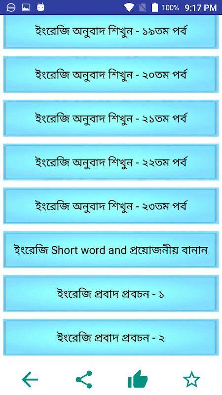 Wydaje się, że w dobie technologii potrzeba edukacji w języku angielskim rośnie. W naszej pracy musimy codziennie rozmawiać po angielsku. Zwłaszcza ci, którzy dopiero ćwiczą nową naukę angielskiego. Najłatwiejszym sposobem mówienia po angielsku jest codzienne zapamiętywanie słownictwa angielskiego za pomocą dobrej jakości mówionej aplikacji w języku angielskim. Następnie znajdź podobnie myślącego przyjaciela i kontynuuj rozmowę z języka angielskiego na bengalski, ignorując zasady gramatyki języka angielskiego. Na początku nie będziesz w stanie śledzić mówionej książki w języku angielskim i mówić za pomocą gramatyki angielskiej. Jeśli postępujesz zgodnie z łatwą książką do nauki angielskiego i nie ćwiczysz mówienia po angielsku, nauka angielskiego w zaledwie 30 dni nigdy się nie skończy. Kiedy zdasz sobie sprawę, że możesz teraz mówić i rozumieć angielski w prosty sposób bez pomocy angielskich podręczników edukacyjnych, możesz tłumaczyć zdania z bangla na angielski oraz z angielskiego na bengalski na dwa sposoby. Nasza aplikacja jest w zasadzie do czytania i tłumaczenia zdań z Bangla na angielski tłumaczenia offline. Wierzymy, że przy pomocy tych aplikacji tłumaczących Bangla na angielski offline będziesz w stanie osiągnąć zamierzony cel. Jeśli szukasz łatwej w użyciu aplikacji do tłumaczenia z Bangla na angielski, która w krótkim czasie mówi po angielsku, ta aplikacja do tłumaczenia z angielskiego na Bangla jest odpowiednia dla Ciebie. nowy początkujący bardzo dobrze zna angielskie tłumaczenie Bangla, jeśli będziesz postępować zgodnie z tą aplikacją, możesz łatwo przetłumaczyć angielski anuvad Bangla. mam nadzieję, że podoba Ci się angielskie tłumaczenie bangla anubad, udostępnij wszystkim. dzięki