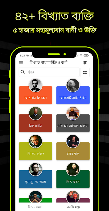 Życie zmieniające status motywacyjny i inspirujące cytaty w języku bengalskim od sławnych ludzi Ukti pomagają osiągnąć sukces w życiu. Najlepsze pozytywne cytaty z Bangla, status postawy i podpis pod zdjęciem na Facebooku i WhatsApp 2022 mają Bikkhato Monishider Bani. Podziel się z przyjacielem inspirującym Bani Kotha / Famous Success Ukti. Ta aplikacja ma Bikkhato Bektider Bani / Cytaty - status Facebook Bangla i podpis pod zdjęciem, a także Kazi Nazrul Islam i Humayun Ahmed Ukti.