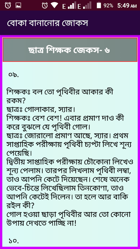 Bangla jokes or bangla koutuk is an entertaining app? Here you will get new Jokes, Boltu Jokes to amusing jokes. This is the best funny apps or hasir koutuk for you. You can share funny jokes from this application.