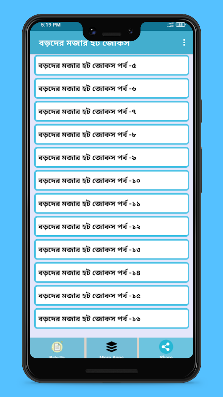 অ্যাডাল্ট জোকস,বড়দের জোকস,ধাধা জোকস,মজার জোকস,স্বামী স্ত্রী হট জোকস,প্রচন্ড হাসির জোকস,বল্টুর সেরা জোকস,বিয়ের জোকস,ভালবাসার হাসির জোকস,মিরাক্কেল হাসির জোকস,গরম জোকস ইত্যাদি।