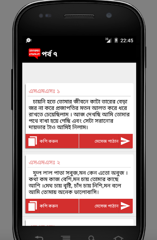 ৮ টি ক্যাটেগরিতে বাংলা ভালোবাসা এর এসএমএস ( Bangla Love SMS ) নিয়ে এই অ্যাপ।