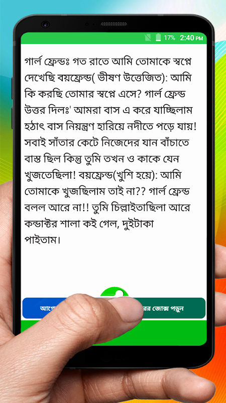জোক্স মানে হাসি আর তাই পড়ে হাসতে হবেই কারন এখানে অনেক মজার বাংলা জোক্স আছে। তাহলে আর দেরী কেন? মজার মজার সব জোকস অপেক্ষা করছে আপনার জন্য। যেগুলো আমার ভালো লেগেছে আপনাদের ও ভালো লাগবে । সরাসরি শেয়ার করার সুবিধা আছে । এর জন্য রয়েছে শেয়ার বাটন । কষ্ট করে আর কপি পেস্ট করতে হবে না ।