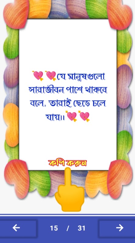 আমাদের এই অ্যাপ বাংলা ভালোবাসার আবেগি কষ্টের স্ট্যাটাস উপভোগ করতে পারবেন।