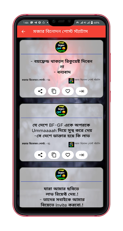 এই অ্যাপসটিতে যে সব মজার পোষ্ট আর ক্যাপশন আছে তা অপনি বন্দুদের সাথে ১ কিল্কে কপি এবং শেয়ার ক রতে পারবেন ।