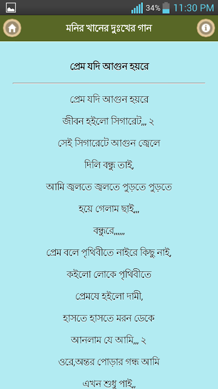 এই এপস এ আরও যা যা পাবেনঃ মনির খানের জনপ্রিয় বাংলা গান, হিটস সেরা গান এম খানের, মনির খানের বাছাই করা গান, কষ্টের ভরা বাংলা গান, বাংলা বিরহের সেরা গান।