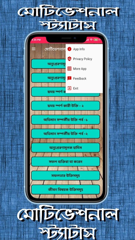 আমাদেরে মধ্যে অনেকেই আছেন যারা বিভিন্ন বিখ্যাত ব্যাক্তিদের উক্তি খুজে- বেড়ান। নানা উক্তি সমগ্র পড়তে পছন্দ করেন। অনেক উক্তি যাদের পড়তে ভালোলাগে বা সেই সব উক্তি পড়ে অনুপ্রেরনা পাশাপাশি বিনোদন পাওয়া যায়, ঠিক তেমনি একটা অ্যাপ হচ্ছে মোটিভেশনাল স্ট্যাটাস উক্তি, এতে শুধু এস এম এস, স্ট্যাটাস ছাড়াও আরও পাবেন বিখ্যাত ব্যাক্তিদের বাণী। যারা বাণী চিরন্তনী বা বিখ্যাত ব্যক্তিদের বাণী কিংবা বিখ্যাত মনিষীদের উক্তি খুজছেন তাদের জন্য এই মোটিভেশনাল স্ট্যাটাস বা বানী চিরন্তনী অ্যাপটি তৈরি করা হয়েছে।