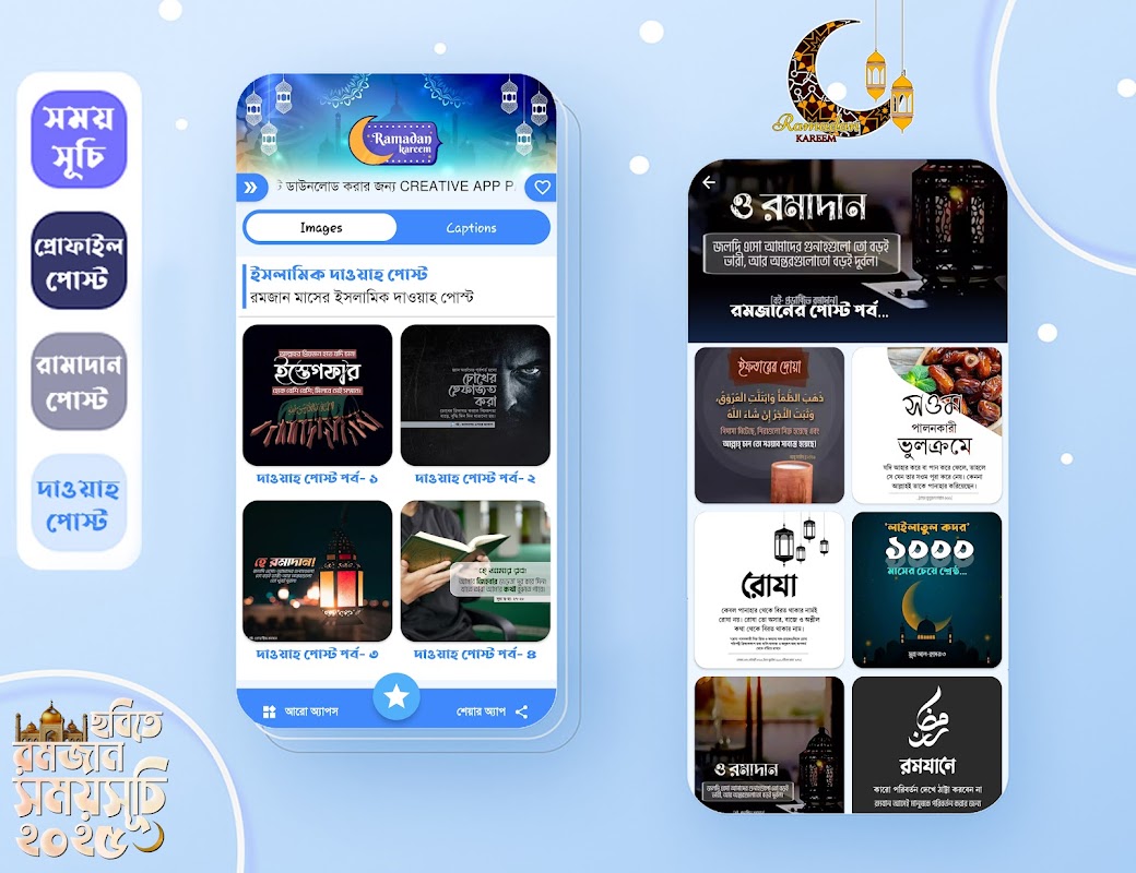 আর অল্প কিছুদিনের ব্যাবধানে বাংলাদেশের পবিত্ র রমজান শুরু হতে যাচ্ছে। তাই একজন মুসলমান হিসেবে আপনার দায়িত্ব পবিত্র রমজানের সময় সূচি 2025 এবং মাহে রমজানের ফজিলত সম্পর্কে অন্য সকল মুসলিম ভাই-বোনদের কে জানানো। আপনি যদি অবশ্যই রমজানের শুভেচ্ছা জানানোর জন্য রমজানের এসএমএস কিংবা ইসলামিক স্ট্যাটাস অনুসন্ধান করছেন? তাহলে এই মাহে রমজানের স্ট্যাটাস অ্যাপটি হতে প ারে আপনার জন্য সঠিক নির্বাচন। মাহে রমজানের পিকচার স্ট্যাটাস অ্যাপ থেকে খুব সহজেই রমজানের এসএমএস ও ফেসবুক স্ট্যাটাস সংগ্রহ করে ইসলামিক ফেসবুক স্ট্যাটাস ছবি সহ পোস্ট এবং শেয়ার করতে।। ইন-শা-আল্লাহ রমজান মাসের পিকচার ও রমজান স্টাটা স গুলো আপনার ইসলামিক দাওয়াহ কাজকে আরো সহজ করে দিবে।
