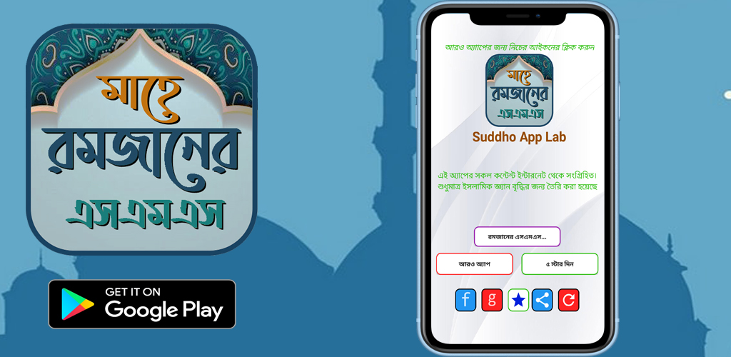 রমজানের SMS ও স্ট্যাটাস এই অ্যাপসটি নিয়ে হাজির হির এইখান থেকে আপনারা পাবেন মাহে রমজানের শুভেচ্ছা জানানের জন্য এস এম এস। অনুপেরনা মূলক ইসলামিক স্ট্যাটাস পাবেন।যা আপনি সেয়ার করে সকল মুসলিমদের মনে ভালো কিছু উক্তি জানাতে পারবেন। এই অ্যাপটির মধ্যে আমরা অনেক গুলি হাদিস এসএমএস আঁকারা তুলে ধরেছি।আপনি নিজে পড়ুন ও সবার সাথে শেয়ার করুন মাহে রমজানের SMS i status.