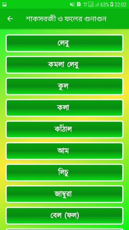 Informacje শাক সবজি ও ফলের গুনাগুন APK
