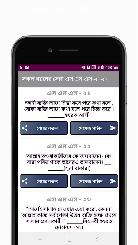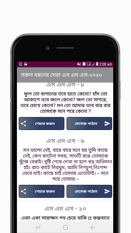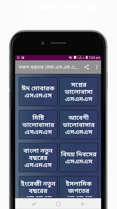 অতএব, আজকের আমাদের এই বাংলা অ্যাপটি সকল ধরনের নতুন সব এস এম এস দিয়েই আপনাদের জন্য সাজানো, আশা করি অ্যাপটি আপনাদের সবাইকে অনেক উপকৃত করবে।