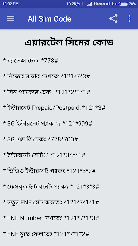 সকল সিমের দরকারি কোড 1.2