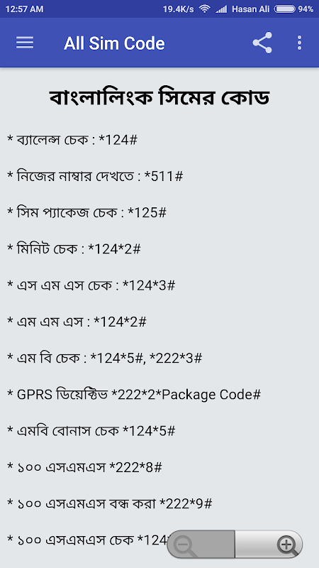 তখন আমরা ঐ প্যাকেজ কিনার জন্য কোড খুজে থাকে এমন কি সিম কোম্পানি অফিসে কল করে থাকি। তাই যদি এ এপ্সটি আপনার মোবাইলে ডাউনলোড করে রাখেন তাহলে বাংলাদেশের সকল সিমের দরকারি এবং গোপন কোড সমুহ জানতে পারবেন।