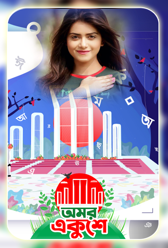অ্যাপটিতে ২১ শে ফেব্রুয়ারি ফটো ফ্রেম দিয়ে স াজানো হয়েছে।