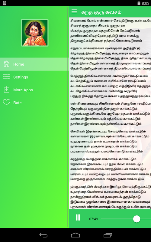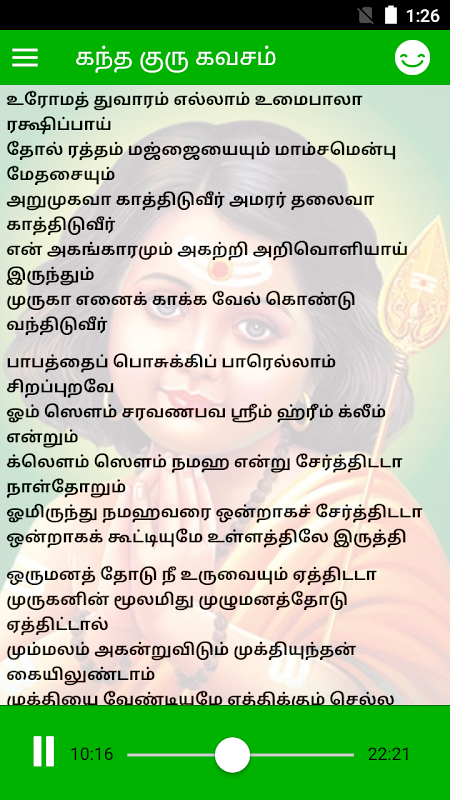 Czytać i słuchać w trybie offline Kandha Guru Kavasam Tamil piosenkę oddania.