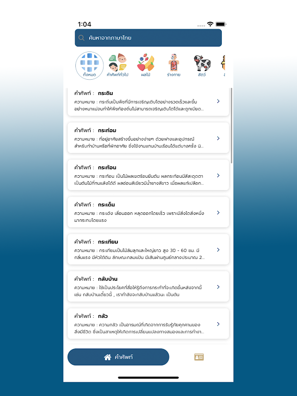 Służy do wyszukiwania słów w Isan lub kategorii od A do Z, a także do słuchania wypowiadanego słowa tego słowa.