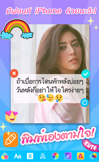 😊 แต่งรูปโดยใส่คำในรูปภาพ พิมพ์ไทยบนภาพ มีฟอนท์ไทยสวยๆ ให้เลือก 100+แบบ *ทีมงานจะอัพเดทฟ้อนท์สวยๆ ให้คุณตลอดเวลา*