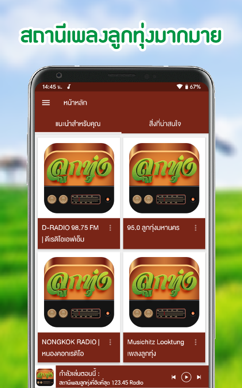 🎶 Aplikacje „Słuchaj piosenek luk thungów online 24 godziny na dobę” zawiera najpopularniejsze piosenki luk thungów. najnowsza muzyka country Dla tych, którzy lubią słuchać muzyki country w Internecie. Dostępne są zarówno nowe, jak i stare utwory. Darmowe aktualizacje muzyki. słuchać muzyki online 24 godziny na dobę za pomocą aplikacji mobilnej lub tabletu z systemem Android za darmo Zbiór popularnych piosenek country tygodnia Zaktualizujmy, aby słuchać piosenek, które trafiają na listy przebojów z internetowych stacji radiowych. Piosenki Lukthung, które obejmują różnych wykonawców i gatunki. obie tajskie piosenki luk thung Lukthung na całe życie Lukthung pieśń na całe życie, Lukthung Mo Lam, stara piosenka Lukthung słuchaj i bądź szczęśliwy Od dźwięków muzyki dochodzącej z pól i wsi, przenoszącej poprzez muzykę akcent tajlandzki. Zostało to odebrane przez fanów na całym niebie w Tajlandii. aby każdy mógł posłuchać najpopularniejszych piosenek country przez urządzenie z Androidem za darmo
