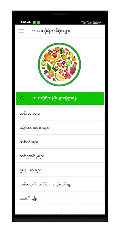 မြန်မာအစားအစာများတွင်ပါဝင်သောကယ်လိုရီတန်ဖိုးများကိုစုစည်းထားတဲ့ Aplikacja ဖြစ်ပါတယ်