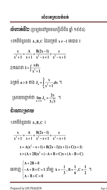 នេះគឺជាកម្មវិធីទាក់ទងនិងគណិតវិទ្យា ជាសៀវភៅគណិតវិទ្យា អាំងតេក្រាលកំណត់ ដែលបានរៀបចំឡើងជាមួយទូរស័ព្ទ